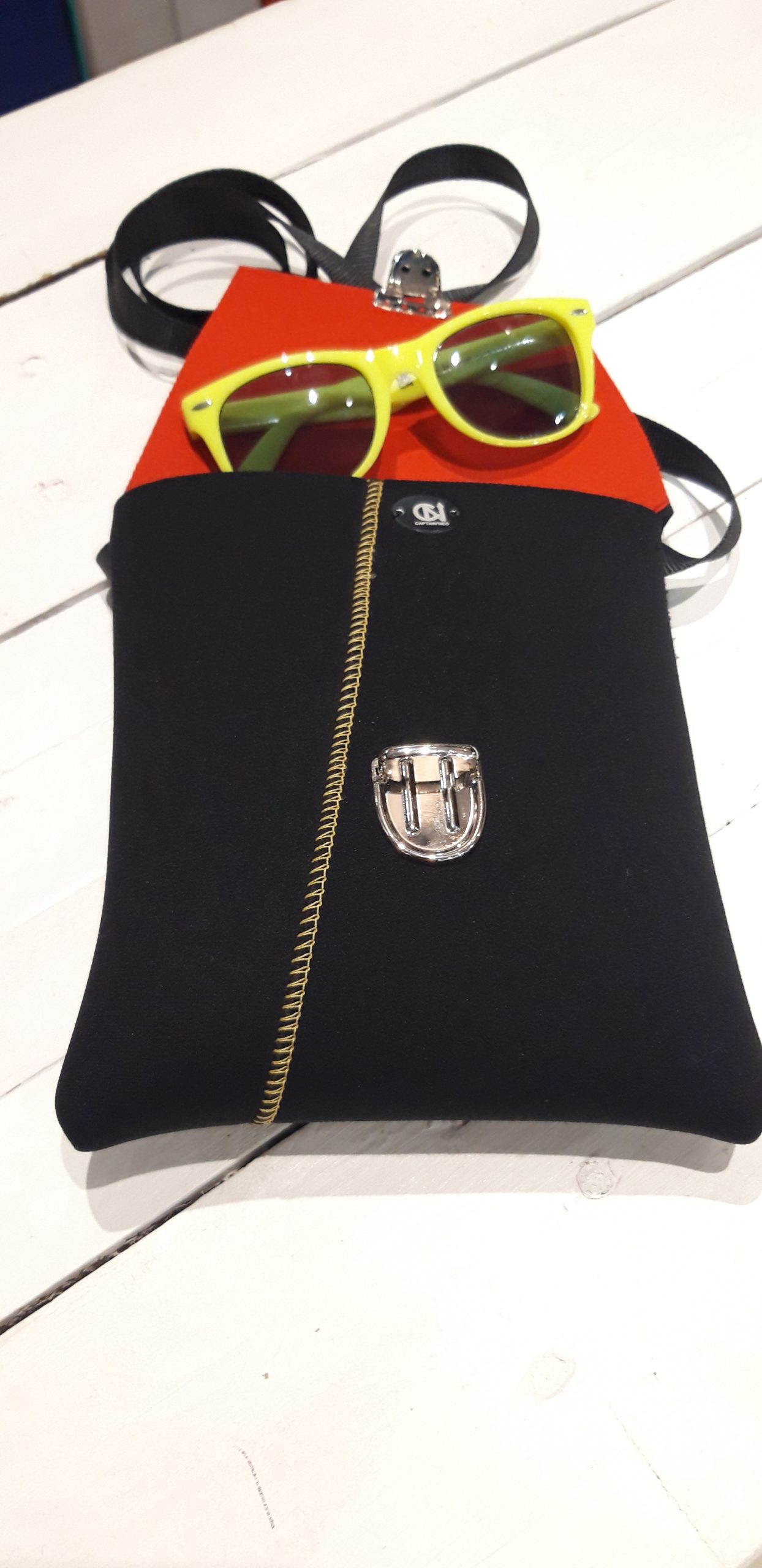 D’une grande contenance, elle peut contenir aussi lunette, porte monnaie, range carte, et même une paire de gants .