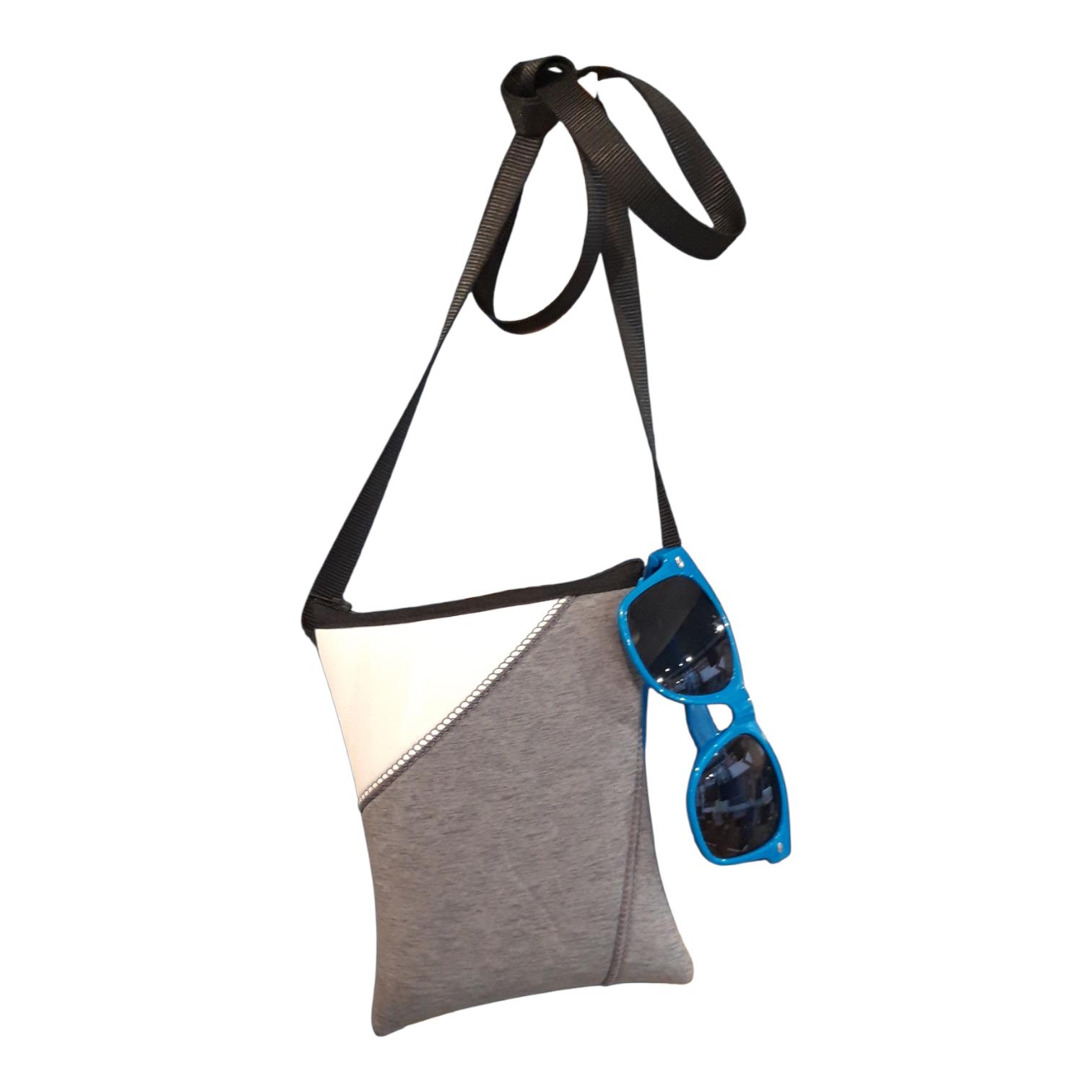 Sacoche double faces, à porter d’épaule ou bandoulière.